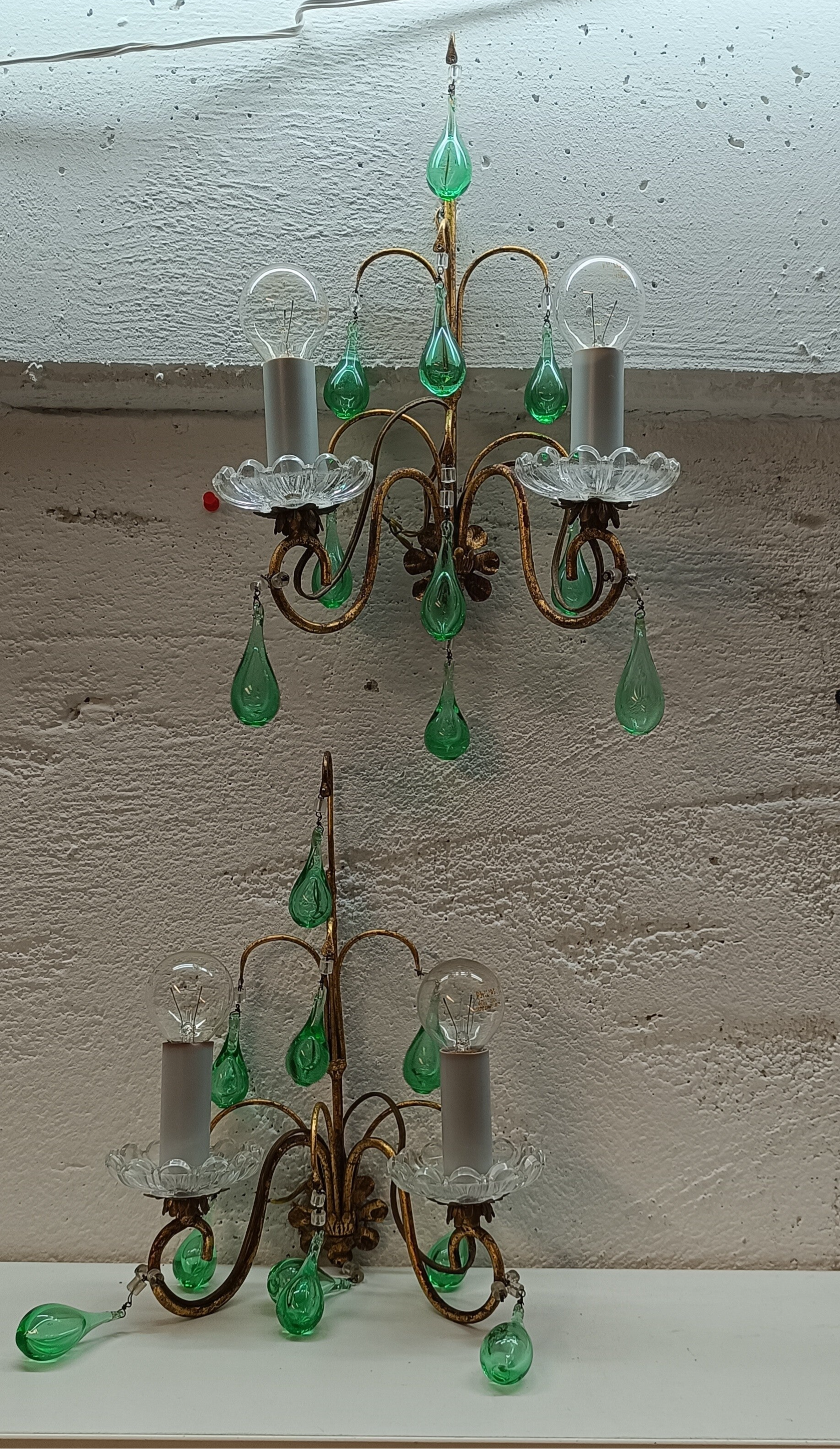 Paar Messing Glas Wandleuchte Wandlampe 2 Flammig