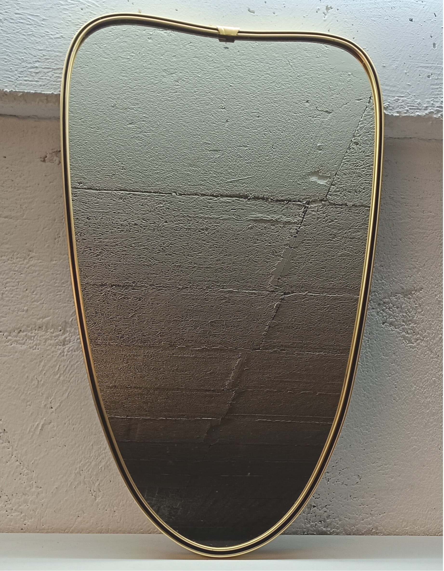 Alte Schöne Nierenspiegel Messing Holz Spiegel Wandspiegel 60x37 cm