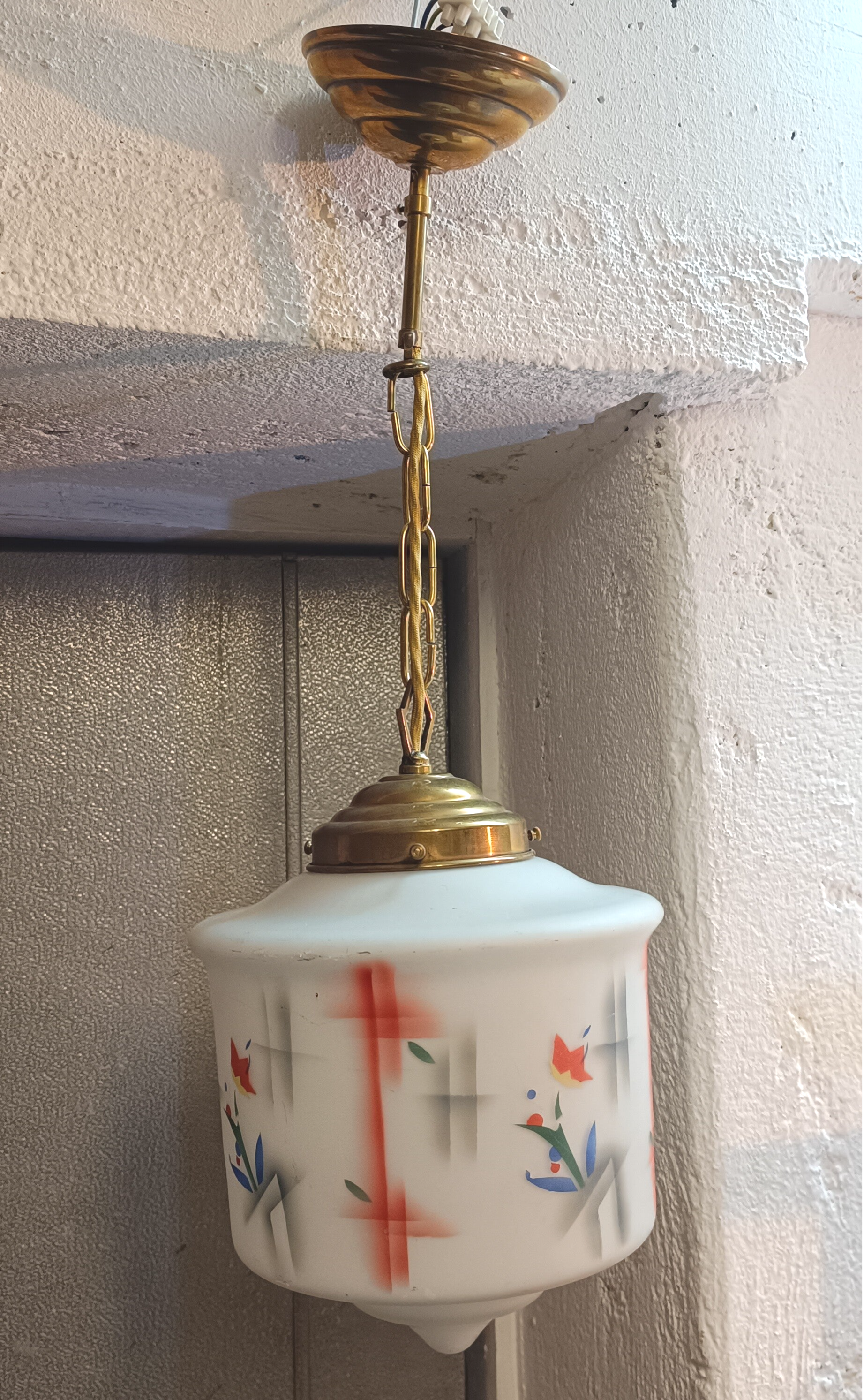 Deckenleuchte 40 er / 50 er Jahre mit Glaslampenschirm Hängelampe